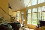 Having raised their children in beautiful Alexandria Township, N.J. our clients wanted to stay close by, but build a smaller home on another lot they owned.  The new home is smaller, but thanks to the open floor plan and the abundant windows, which provide woodland views and plenty of natural daylight, the house feels much larger.  Catherdral ceilings and a loft add to the drama of the space.  Hardi-plank siding and Azek trim provide a low maintenance exterior.  Gently re-working the grade and adding curving retaining walls, we were able to provide a walk-out basement that looks beautiful nestled in the hillside and will allows for more living and entertaining space.