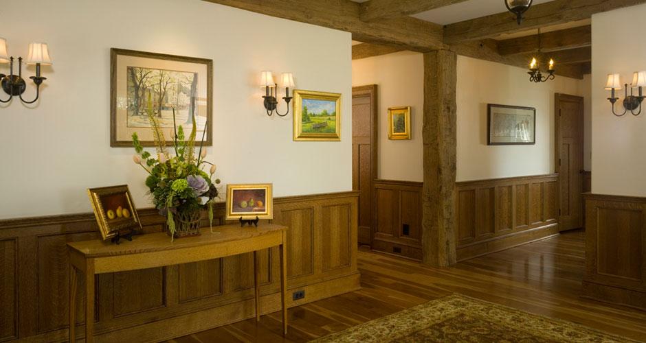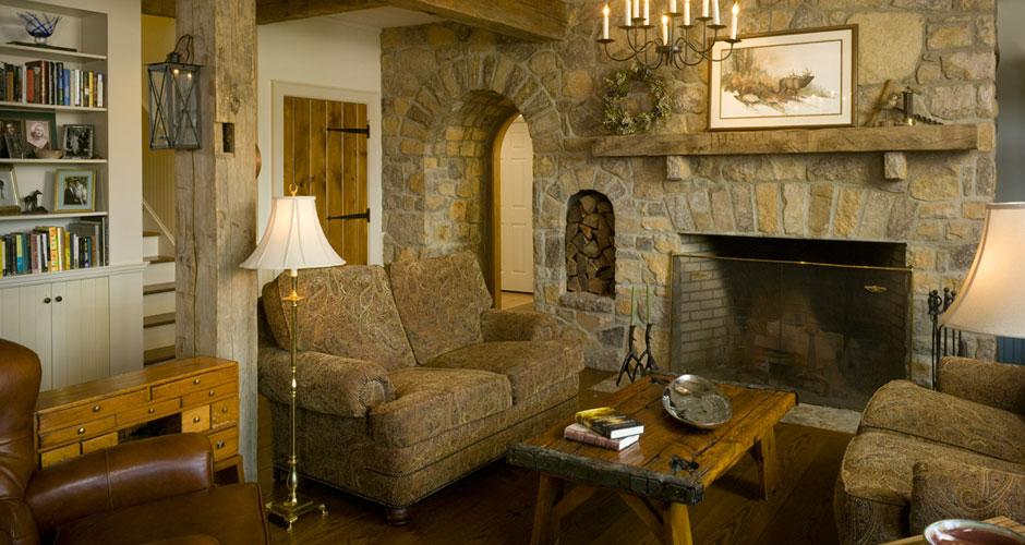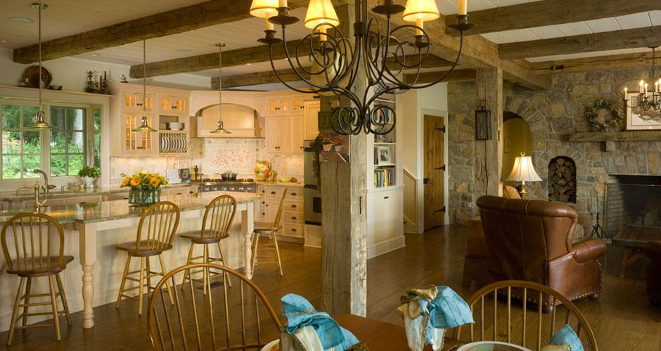 This "farmhouse", originally a one story ranch, has been completely renovated to reflect the farmlands surrounding it. The home was designed to appear as though it was built more than 100 years ago, yet has been modified to support the way we live now. The stonework was meticulously cut and placed piece by piece in the same way stone masons have done throughout history. The stone arches are self supporting, as they too were built the old-fashioned way. Interior detailing reflects the fine craftsmanship for which Phil Rochelle is known.